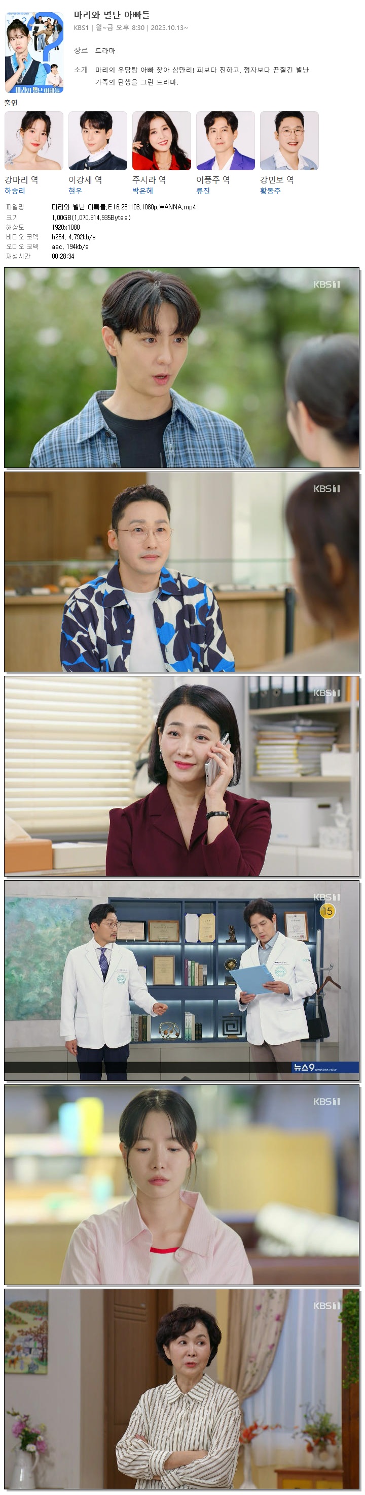 | [KBS1] 마리와 별난 아빠들.E16.251103.1080p.WANNA[하승리, 현우].mp4 | 1021.3 M | 00:28:34 | 1920x1080 |