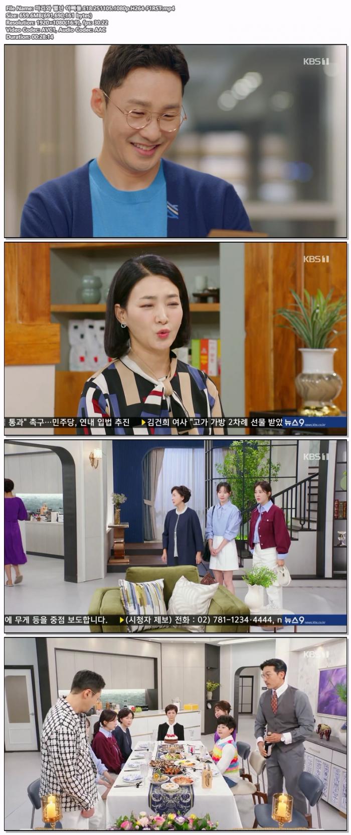 | 마리와 별난 아빠들.E18.251105.1080p.H264-F1RST.mp4 | 659.6 M | 00:28:14 | 1920x1080 |