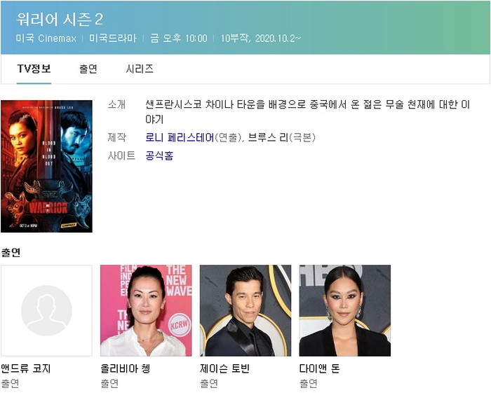 | Warrior.S02E01.Learn.to.Endure,.or.Hire.a.Bodyguard.1080p.10bit.AMZN.WEB-DL.DDP5.1.HEVC-Vyndros.mkv | 976.3 M | 00:55:17 | 1920x1080 |