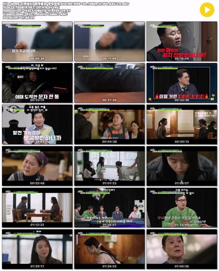 | [채널A] 탐정들의 영업비밀.E55.NF.WEB-DL.1080p.H.264.AAC2.0.mkv | 3.8 G | 01:46:00 | 1920x1080 |