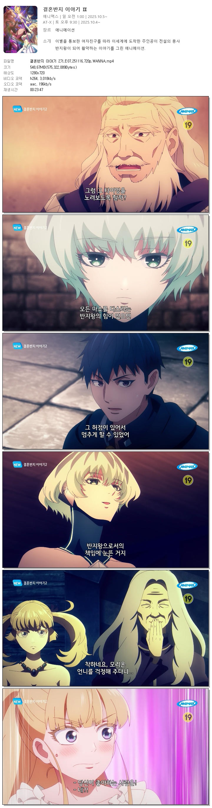 | 결혼반지 이야기 2기.E07.251116.720p.WANNA.mp4 | 548.7 M | 00:23:47 | 1280x720 |