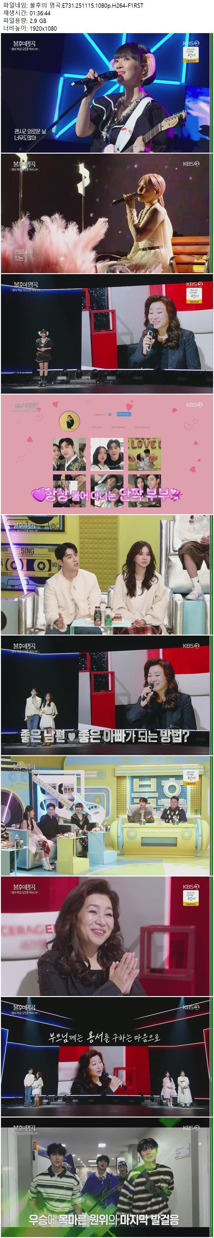 | 불후의 명곡.E731.251115.1080p.H264-F1RST.mp4 | 2.9 G | 01:36:00 | 1920x1080 |