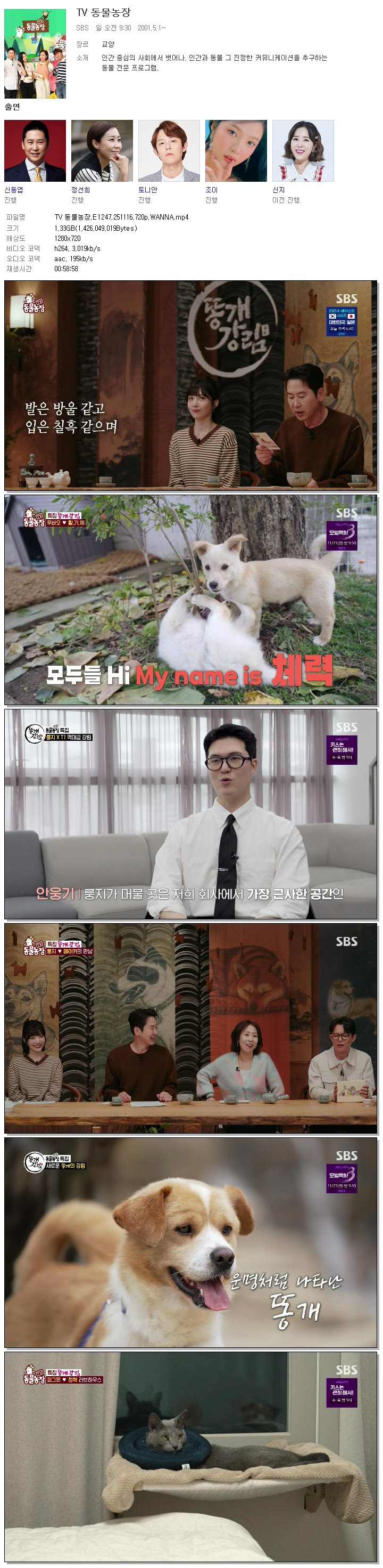 | [SBS] TV 동물농장.E1247.251116.720p.WANNA[신동엽, 정선희].mp4 | 1.3 G | 00:58:58 | 1280x720 |