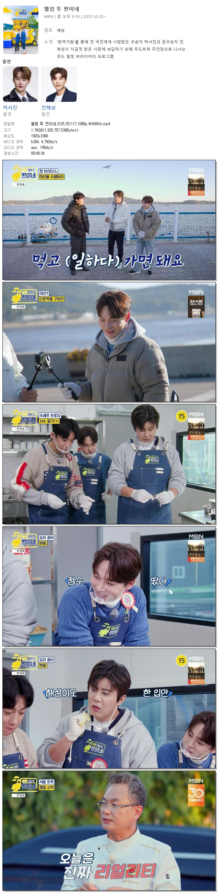 | [MBN] 웰컴 투 찐이네.E05.251117.1080p.WANNA[박서진, 진해성].mp4 | 1.7 G | 00:48:34 | 1920x1080 |