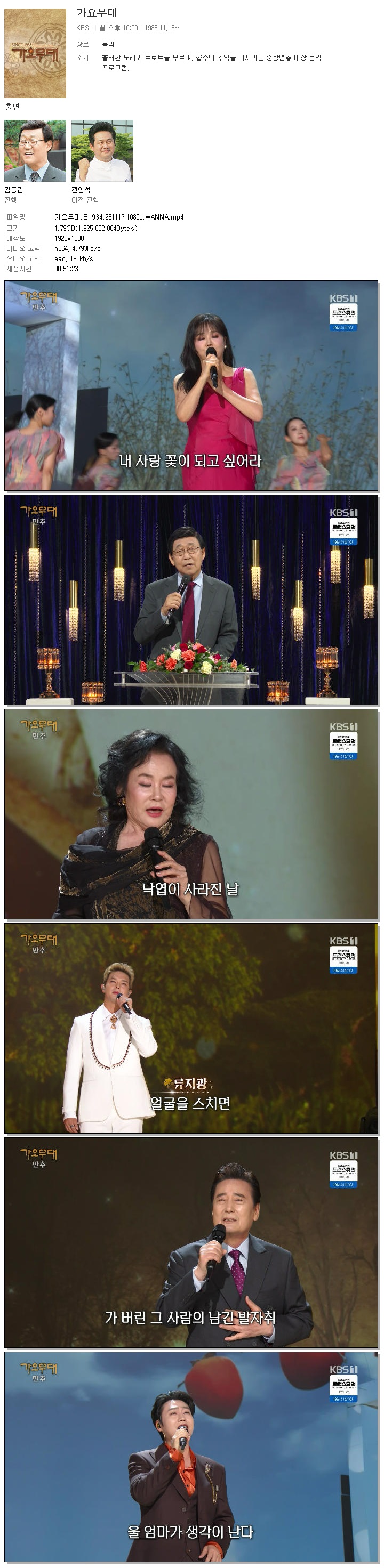 [KBS1] 가요무대.E1934.251117.1080p.WANNA[신유, 박성온].mp4 1.8 G 00:51:23 1920x1080