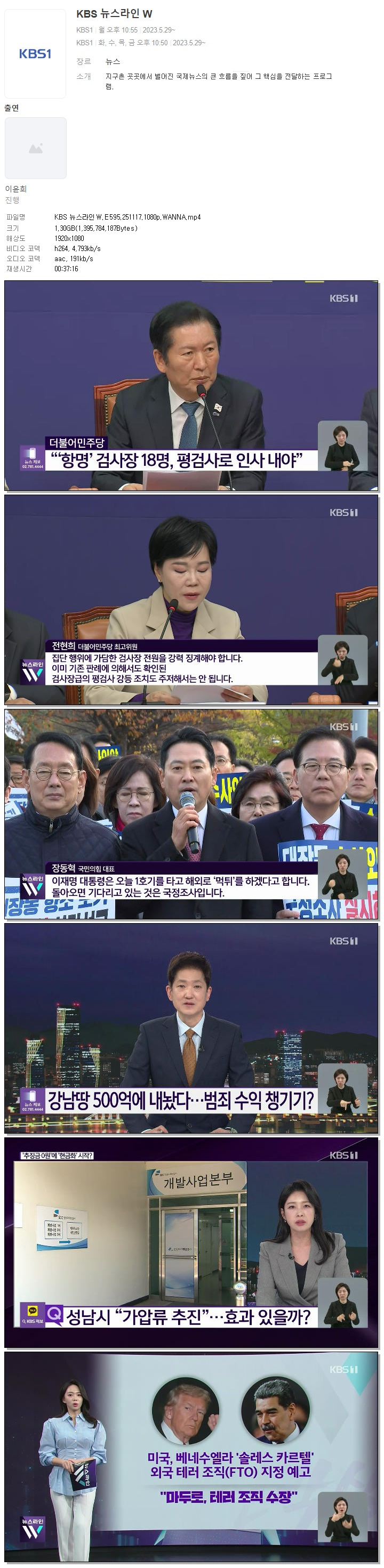 | [KBS1] KBS 뉴스라인W.E595.251117.1080p.WANNA.mp4 | 1.3 G | 00:37:16 | 1920x1080 |