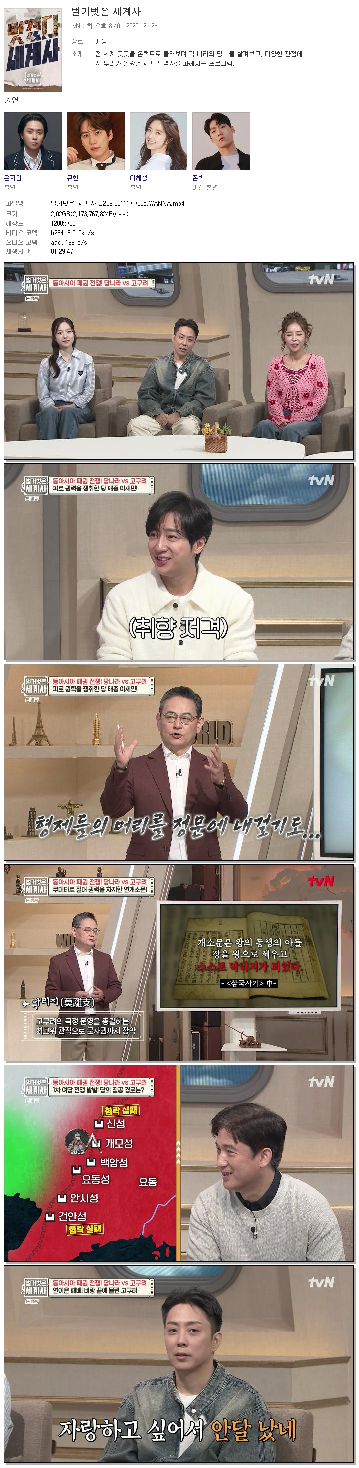| [TVN] 벌거벗은 세계사.E229.251117.720p.WANNA[은지원, 규현].mp4 | 2 G | 01:29:47 | 1280x720 |