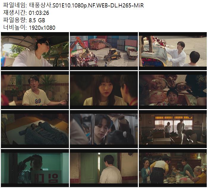 | 태풍상사.S01E10.1080p.NF.WEB-DL.H265-MiR.mkv | 8.5 G | 01:03:00 | 1920x1080 |