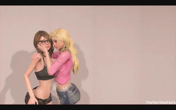 3D 호기심에 미녀 레즈 두명이 젠더 한테