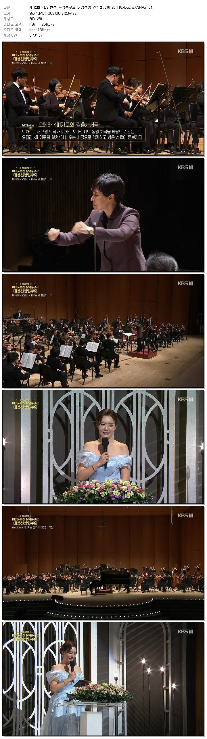 [KBS1] 제32회 KBS 한전 음악콩쿠르 대상선정 연주회.E01.251118.450p.WANNA.mp4 956.4 M 01:34:07 800x450