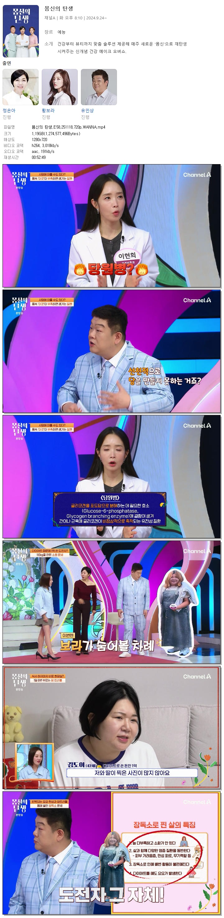 | [채널A] 몸신의 탄생.E58.251118.720p.WANNA[황보라, 유민상].mp4 | 1.2 G | 00:52:49 | 1280x720 |