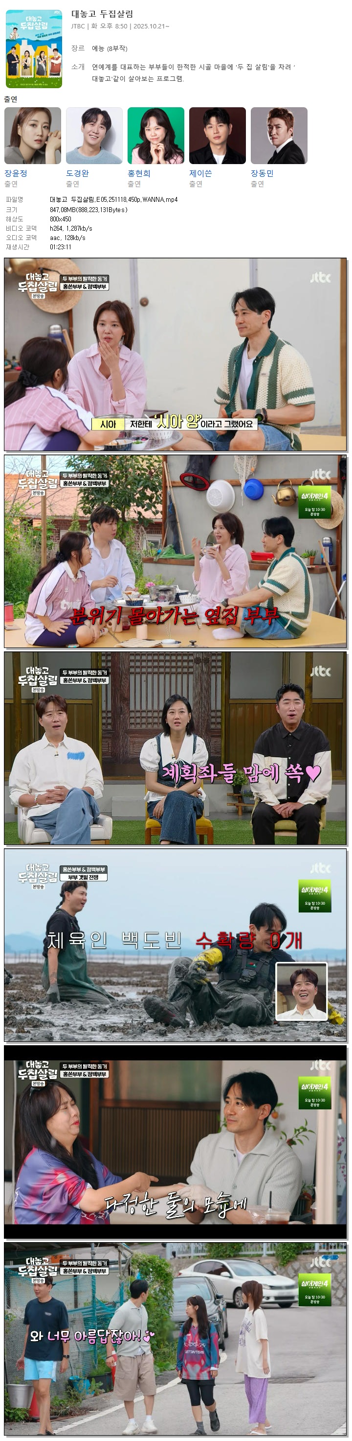 | [JTBC] 대놓고 두집살림.E05.251118.450p.WANNA[백도빈, 정시아].mp4 | 847.1 M | 01:23:11 | 800x450 |