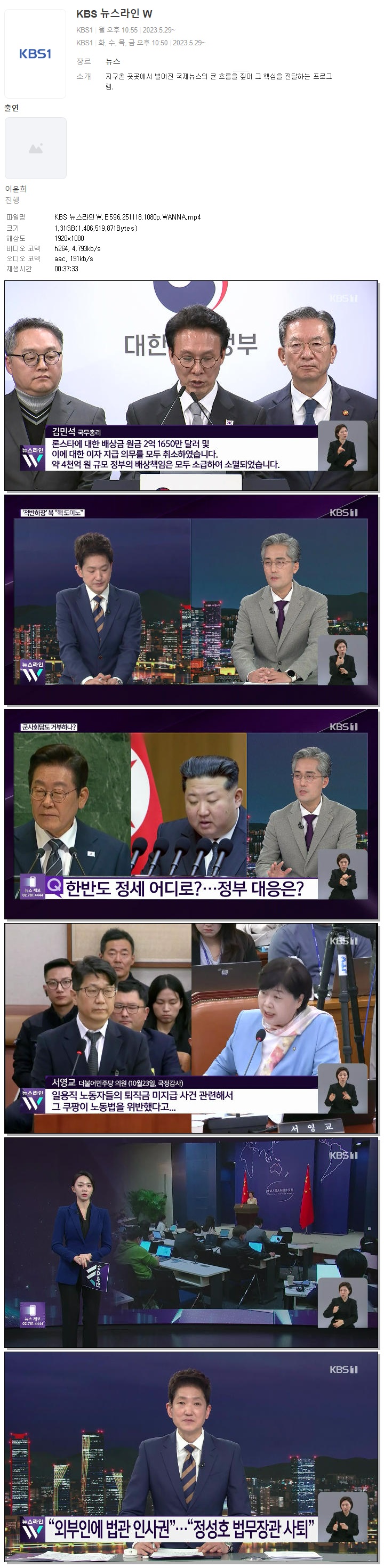 | [KBS1] KBS 뉴스라인W.E596.251118.1080p.WANNA.mp4 | 1.3 G | 00:37:33 | 1920x1080 |