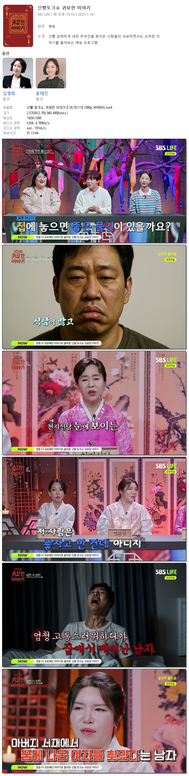 [SBS LIFE] 신빨 토크쇼 귀묘한 이야기.E34.251118.1080p.WANNA[이장준, 혜린].mp4 2.6 G 01:13:44 1920x1080