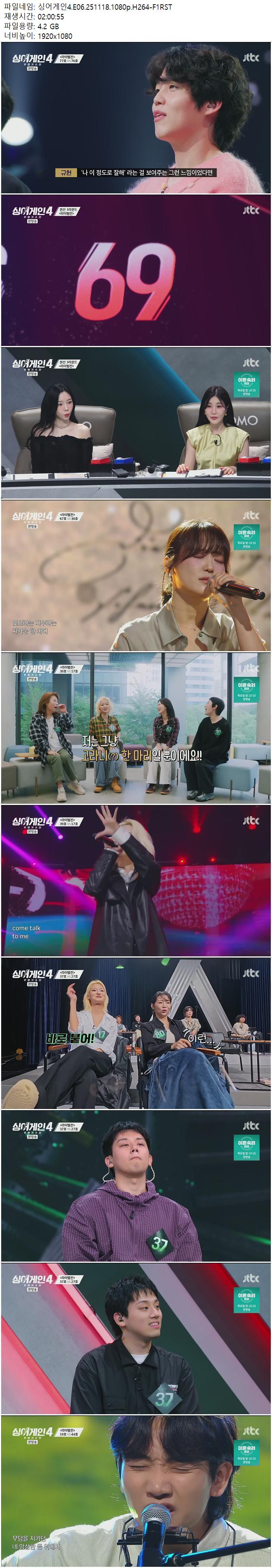 | 싱어게인4.E06.251118.1080p.H264-F1RST.mp4 | 4.2 G | 02:00:55 | 1920x1080 |