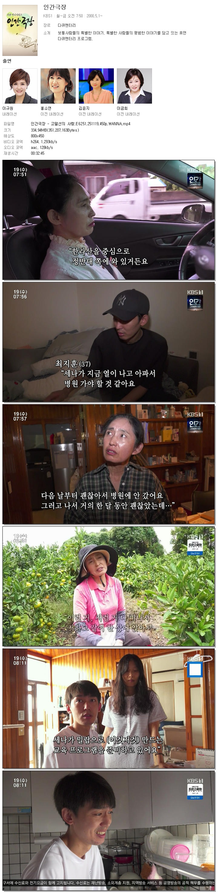 | [KBS1] 인간극장.E6251.251119.450p.WANNA.mp4 | 334.9 M | 00:32:45 | 800x450 |