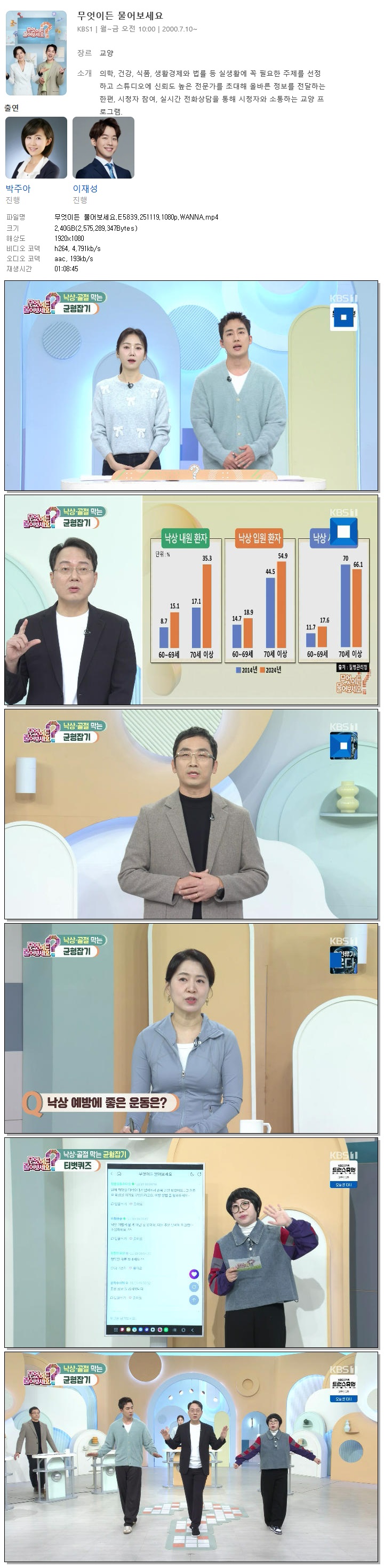 | [KBS1] 무엇이든 물어보세요.E5839.251119.1080p.WANNA[박주아, 이재성].mp4 | 2.4 G | 01:08:45 | 1920x1080 |