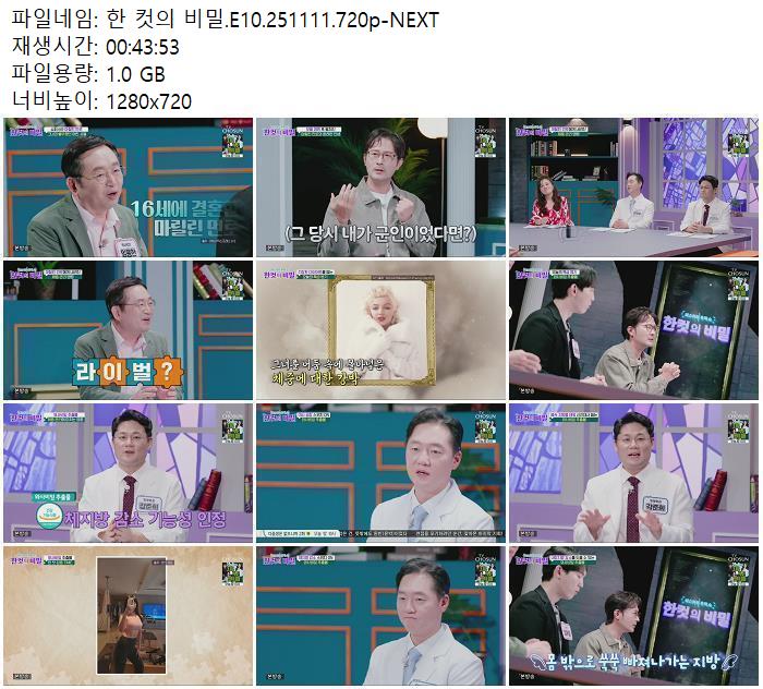| 한 컷의 비밀.E10.251111.720p-NEXT.mp4 | 1 G | 00:43:53 | 1280x720 |