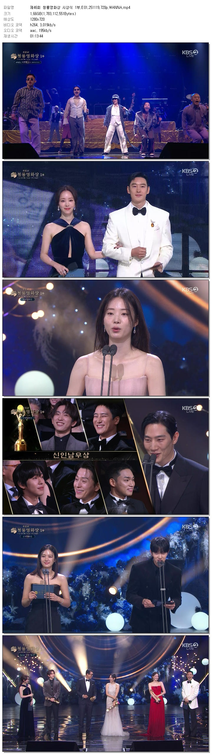 [KBS2] 제46회 청룡영화상 시상식 1부.E01.251119.720p.WANNA[이제훈, 한지민].mp4 1.7 G 01:13:44 1280x720
