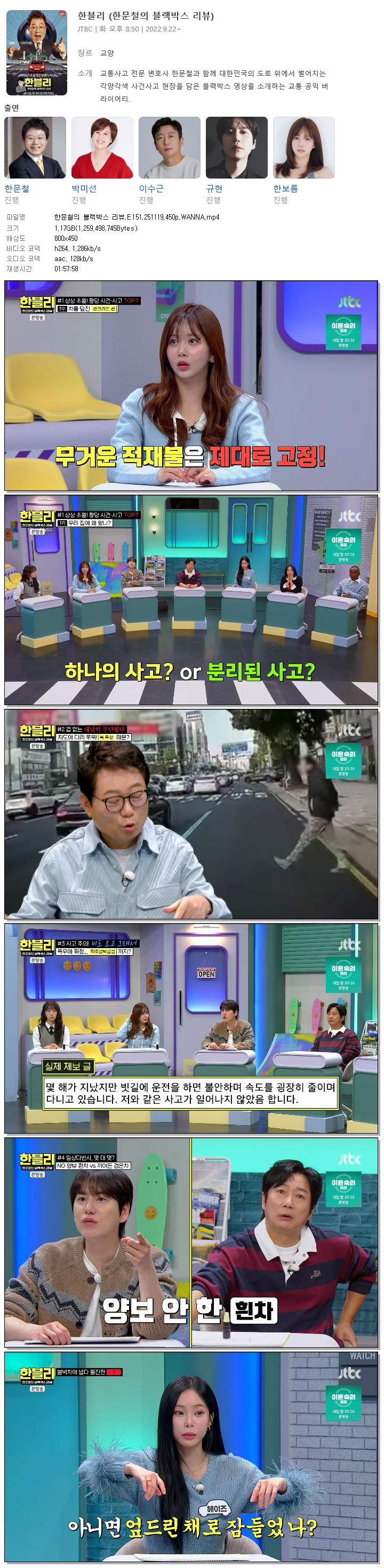 | [JTBC] 한문철의 블랙박스 리뷰.E151.251119.450p.WANNA[헤이즈].mp4 | 1.2 G | 01:57:58 | 800x450 |