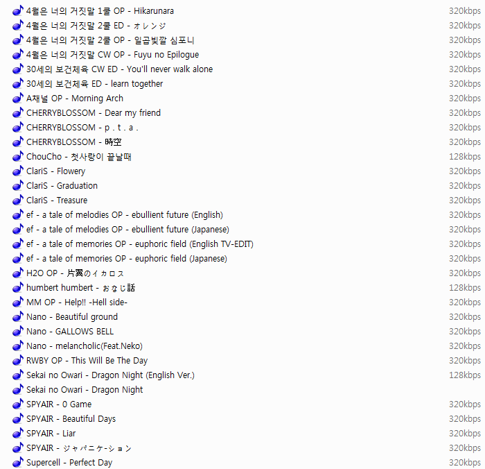 추천 애니 음원들을 선정해 수록한 모음집입니다.