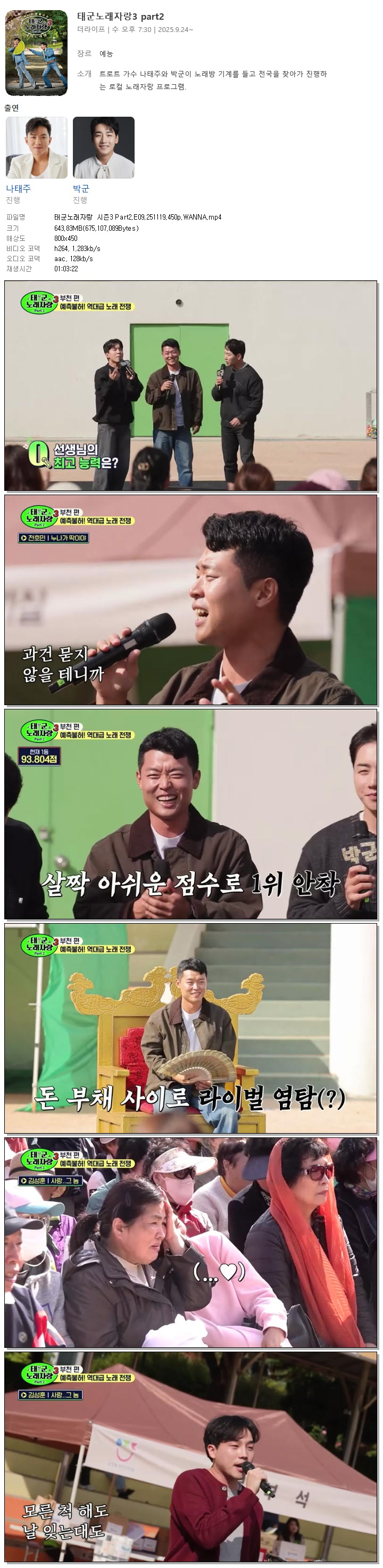 [더라이프] 태군노래자랑 시즌3 Part2.E09.251119.450p.WANNA[나태주, 박군].mp4 643.8 M 01:03:22 800x450