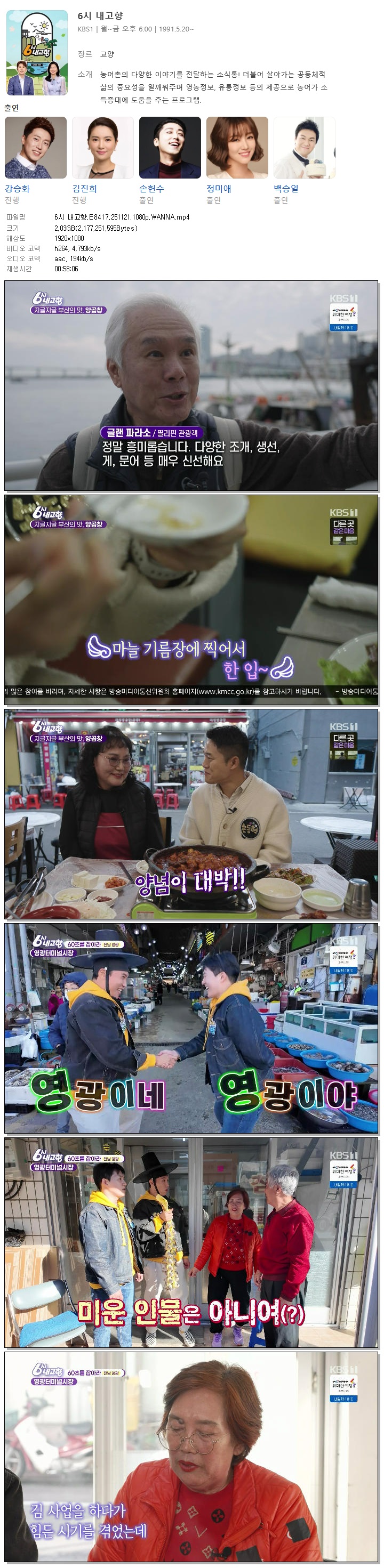 [KBS1] 6시 내고향.E8417.251121.1080p.WANNA[강승화, 김진희].mp4 2 G 00:58:06 1920x1080