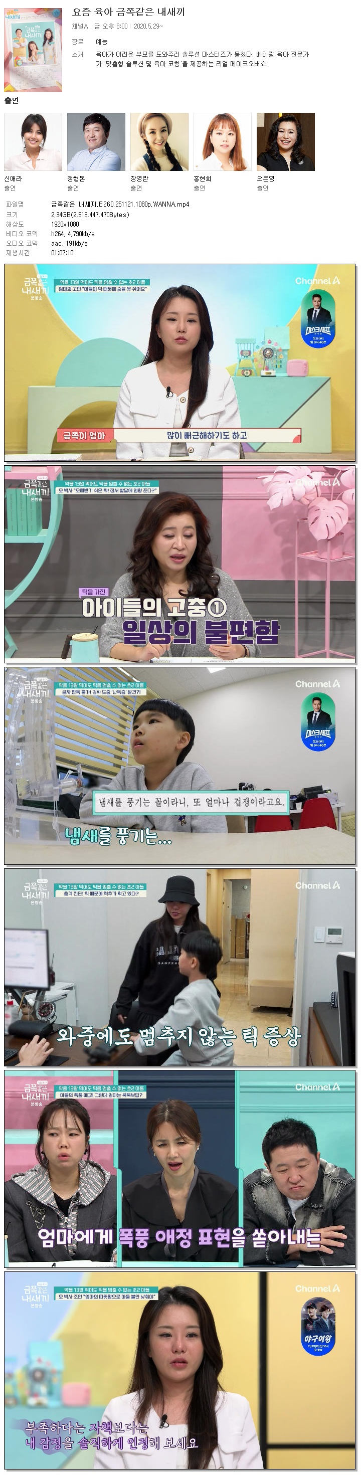 | [채널A] 금쪽같은 내새끼.E260.251121.1080p.WANNA[오은영, 신애라].mp4 | 2.3 G | 01:07:10 | 1920x1080 |