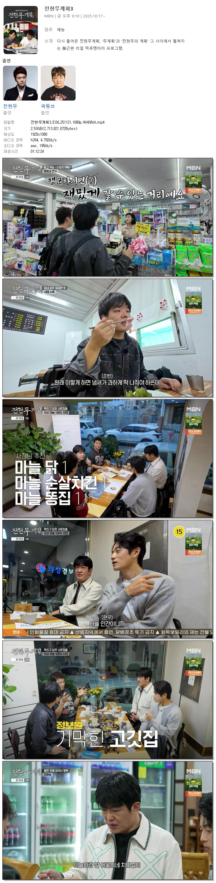 | [MBN] 전현무계획3.E06.251121.1080p.WANNA[허성태, 조복래].mp4 | 2.5 G | 01:12:24 | 1920x1080 |