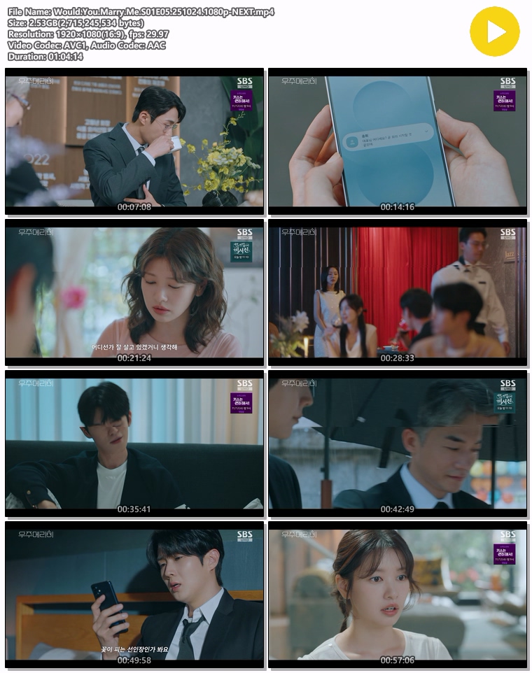 | Would.You.Marry.Me.S01E05.251024.1080p-NEXT.mp4 | 2.5 G | 01:04:14 | 1920x1080 |