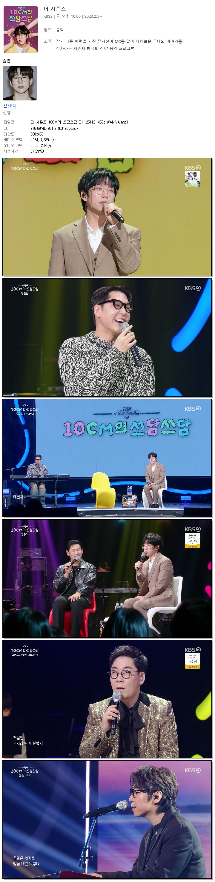 | [KBS2] 더 시즌즈 10CM의 쓰담쓰담.E11.251121.450p.WANNA[김연우, 정준일].mp4 | 916.7 M | 01:29:53 | 800x450 |