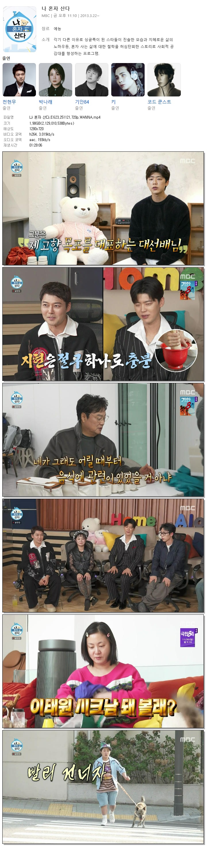 | [MBC] 나 혼자 산다.E623.251121.720p.WANNA[박나래, 박지현].mp4 | 2 G | 01:28:06 | 1280x720 |