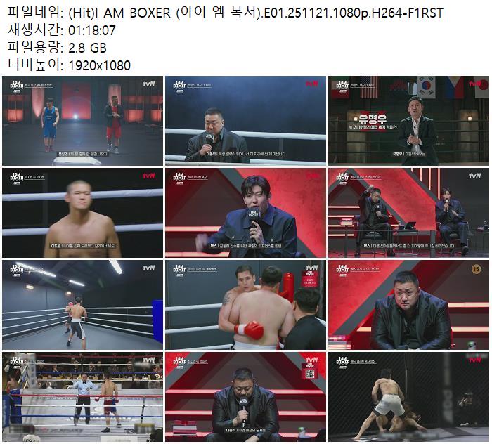 | (Hit)I AM BOXER (아이 엠 복서).E01.251121.1080p.H264-F1RST.mp4 | 2.8 G | 01:18:00 | 1920x1080 |