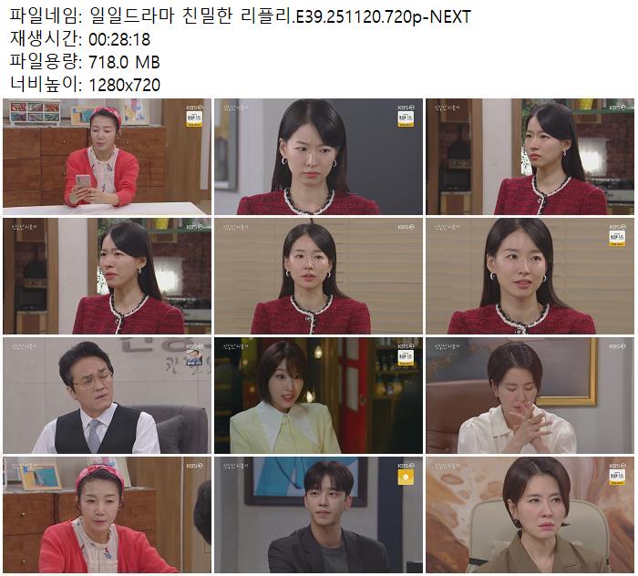 | 일일드라마 친밀한 리플리.E39.251120.720p-NEXT.mp4 | 718 M | 00:28:18 | 1280x720 |