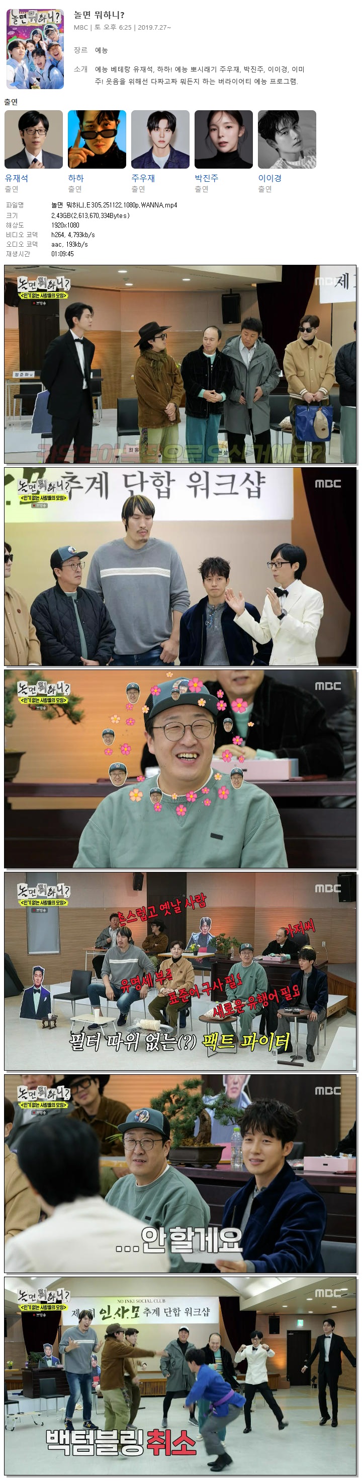 | [MBC] 놀면 뭐하니.E305.251122.1080p.WANNA[최홍만, 김광규].mp4 | 2.4 G | 01:09:45 | 1920x1080 |