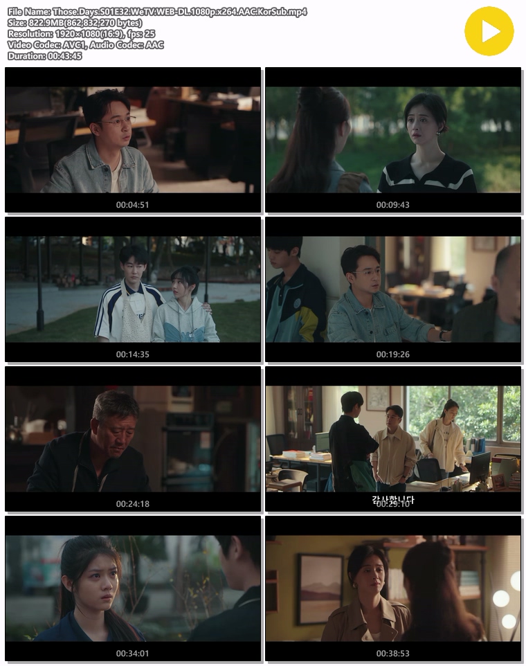 | Those.Days.S01E32.WeTV.WEB-DL.1080p.x264.AAC.KorSub.mp4 | 822.9 M | 00:43:45 | 1920x1080 |