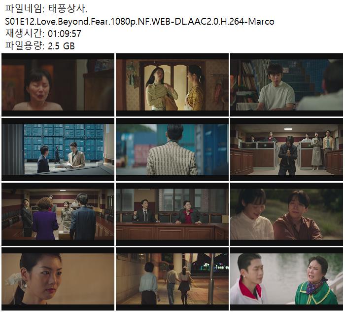 | 태풍상사.S01E12.Love.Beyond.Fear.1080p.NF.WEB-DL.AAC2.0.H.264-Marco.mkv | 2.5 G | 01:09:00 | 1920x1080 |