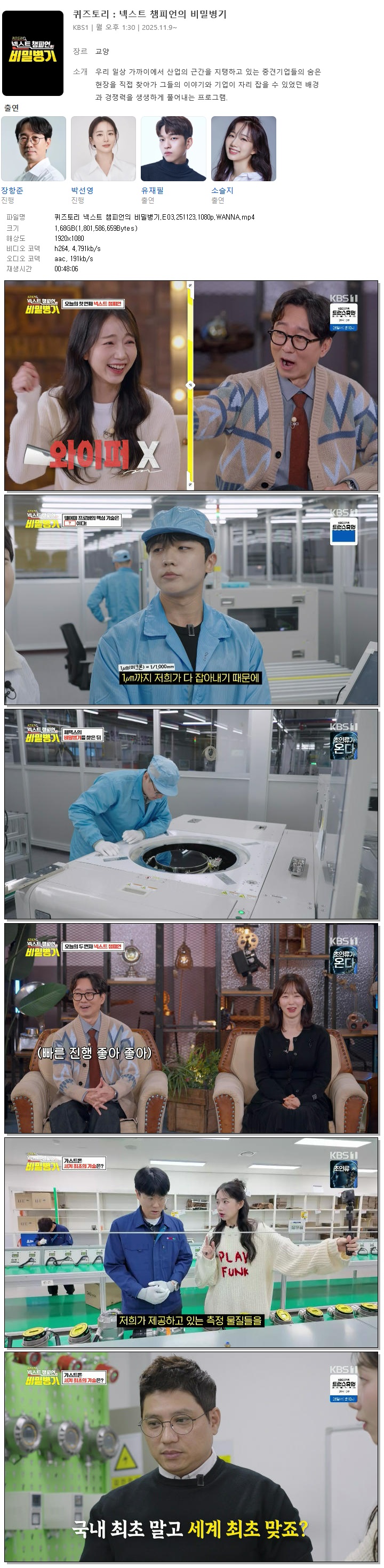 [KBS1] 퀴즈토리 넥스트 챔피언의 비밀병기.E03.251123.1080p.WANNA