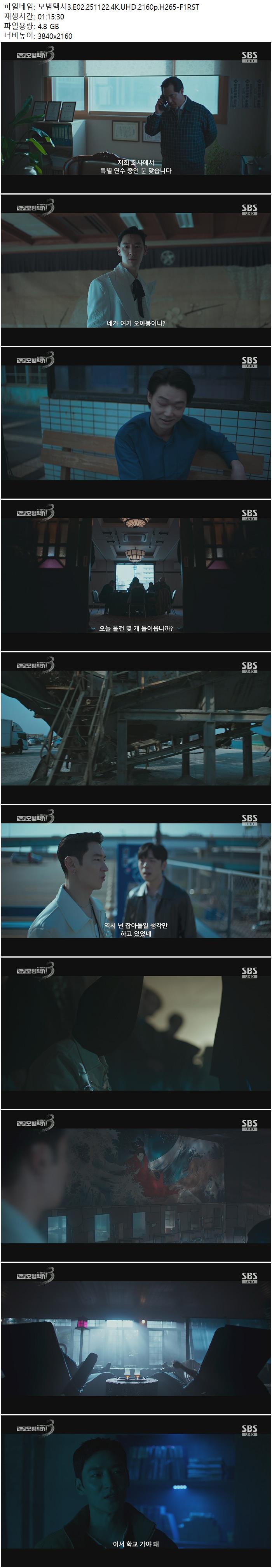 | 모범택시3.E02.251122.4K.UHD.2160p.H265-F1RST.mp4 | 4.8 G | 01:15:30 | 3840x2160 |