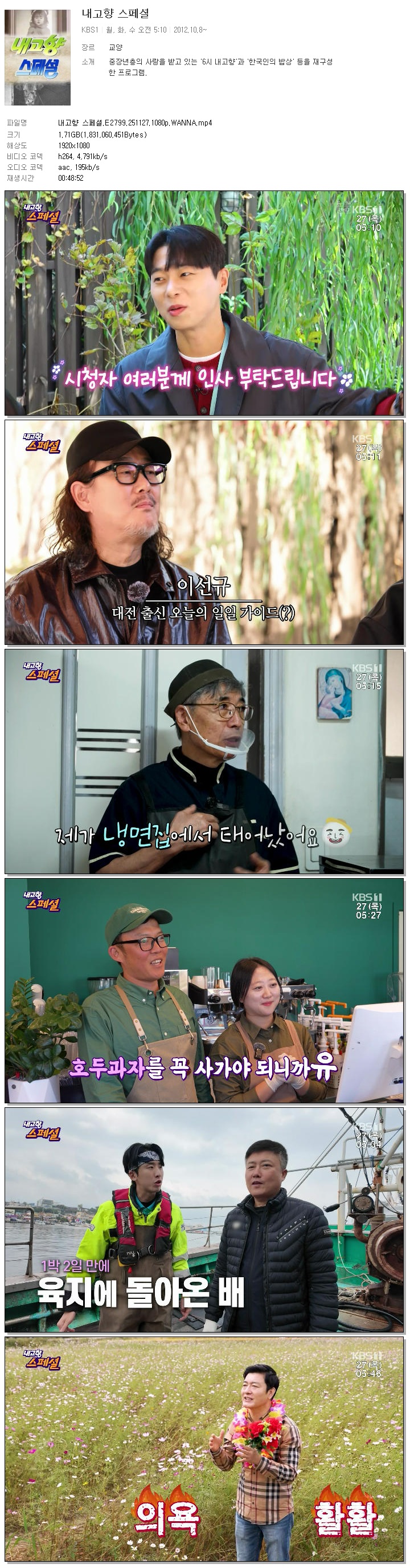 | [KBS1] 내고향 스페셜.E2799.251127.1080p.WANNA.mp4 | 1.7 G | 00:48:52 | 1920x1080 |