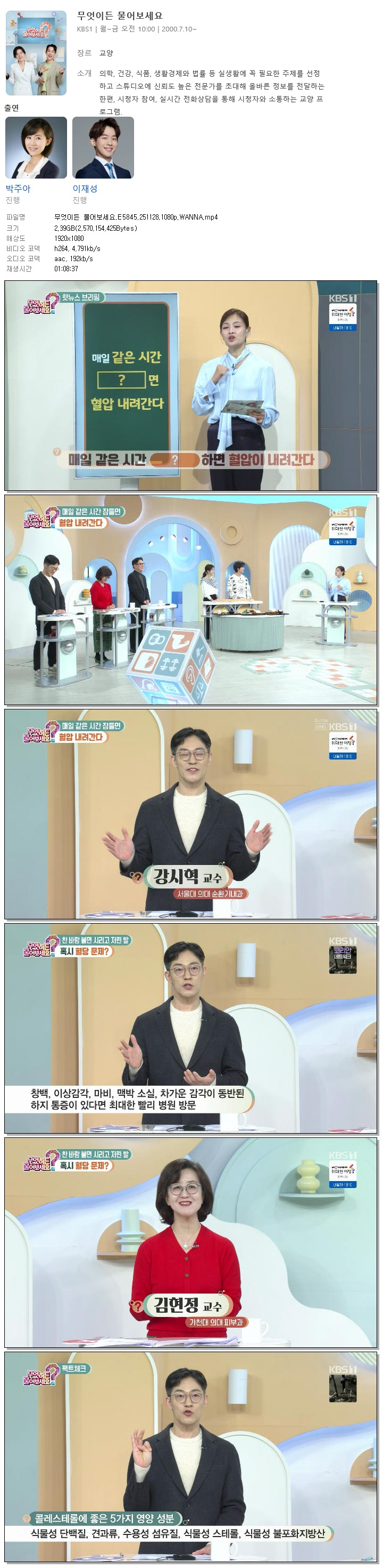 | [KBS1] 무엇이든 물어보세요.E5845.251128.1080p.WANNA[박주아, 이재성].mp4 | 2.4 G | 01:08:37 | 1920x1080 |