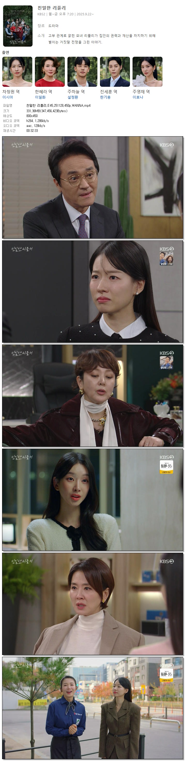 [KBS2] 친밀한 리플리.E45.251128.450p.WANNA[이시아, 이일화].mp4 331.4 M 00:32:33 800x450