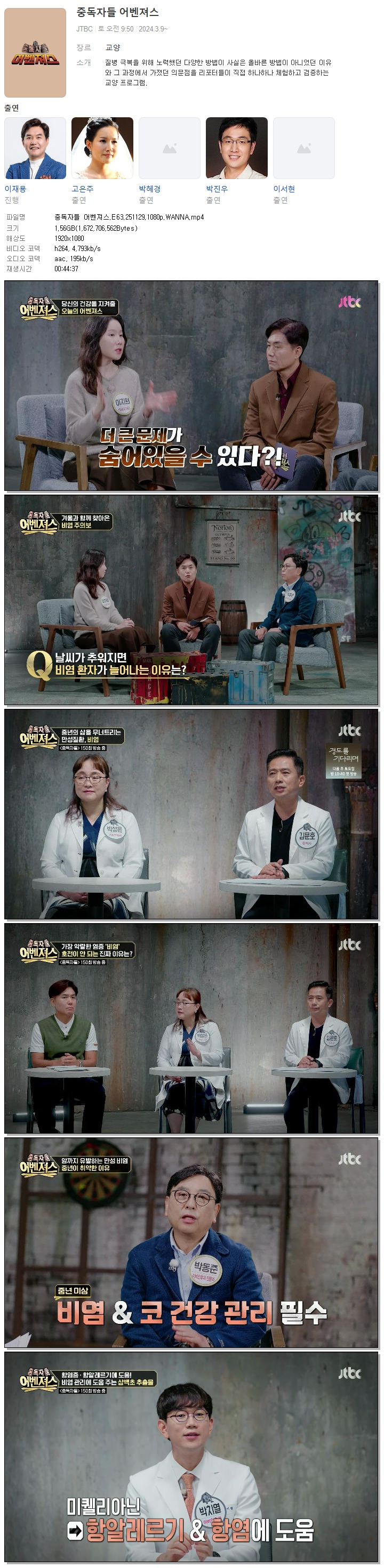 [JTBC] 중독자들 어벤져스.E63.251129.1080p.WANNA[이재용, 고은주].mp4 1.6 G 00:44:37 1920x1080
