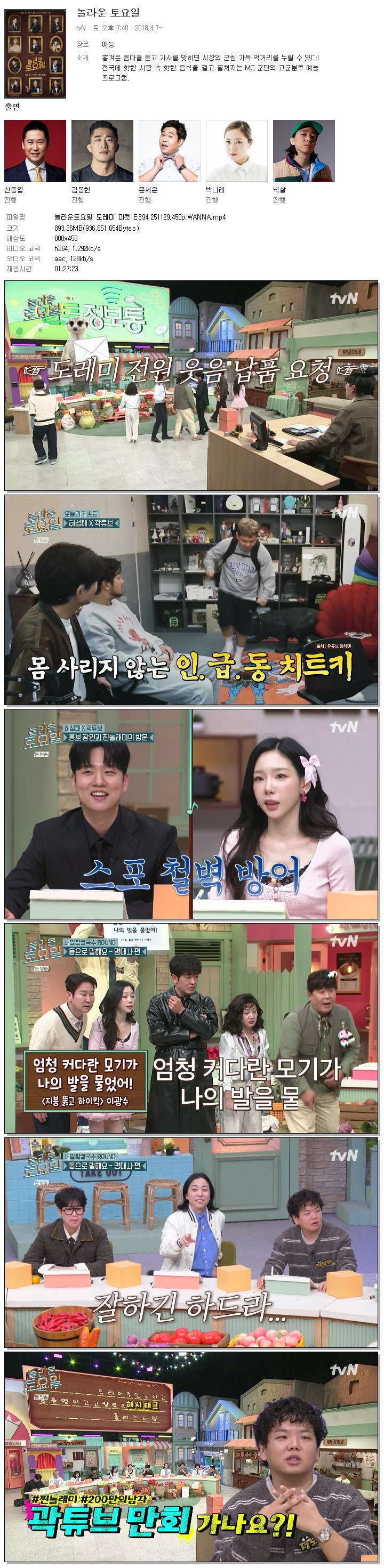 | [TVN] 놀라운토요일 도레미 마켓.E394.251129.450p.WANNA[허성태, 곽튜브].mp4 | 893.3 M | 01:27:23 | 800x450 |