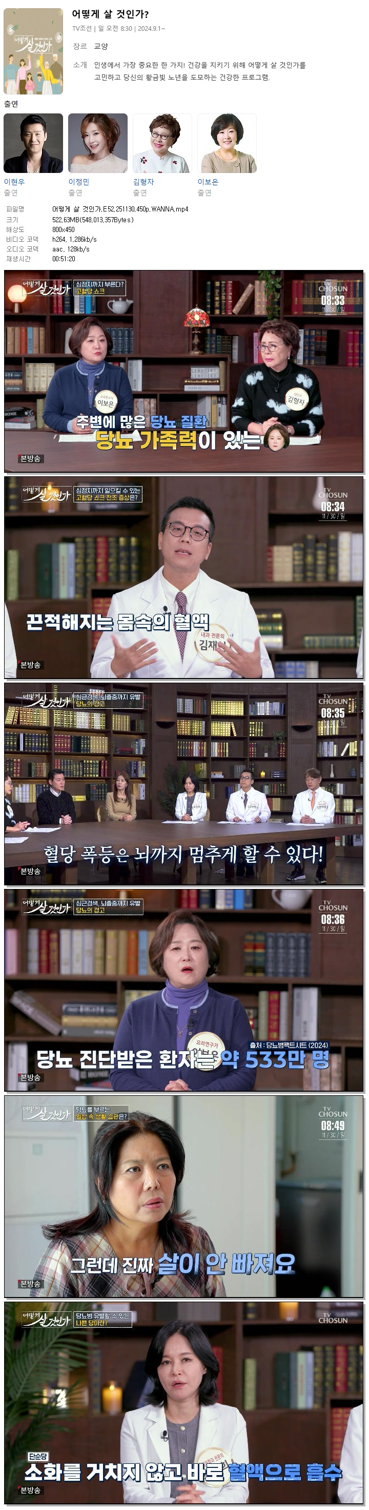 | [TV조선] 어떻게 살 것인가.E52.251130.450p.WANNA[이현우, 이정민].mp4 | 522.6 M | 00:51:20 | 800x450 |