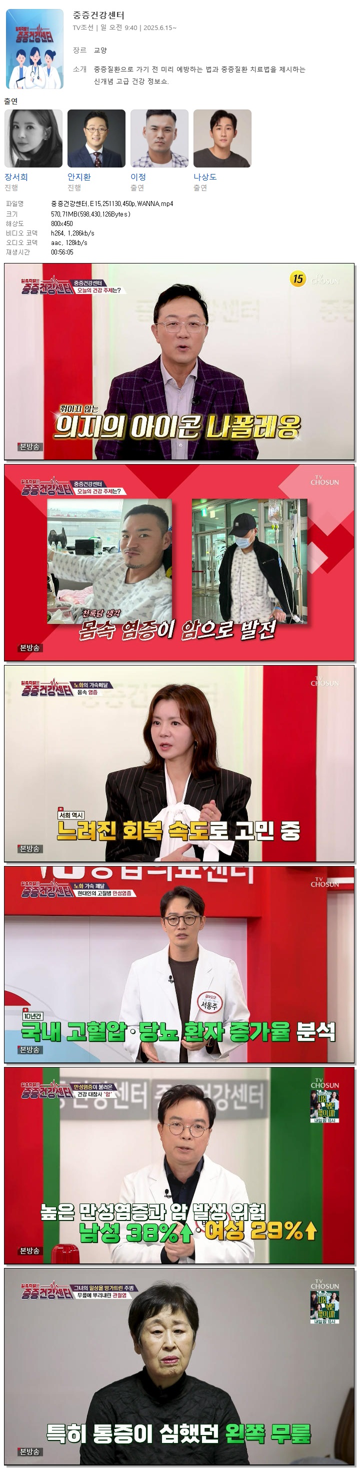 | [TV조선] 중증건강센터.E15.251130.450p.WANNA[장서희, 안지환].mp4 | 570.7 M | 00:56:05 | 800x450 |