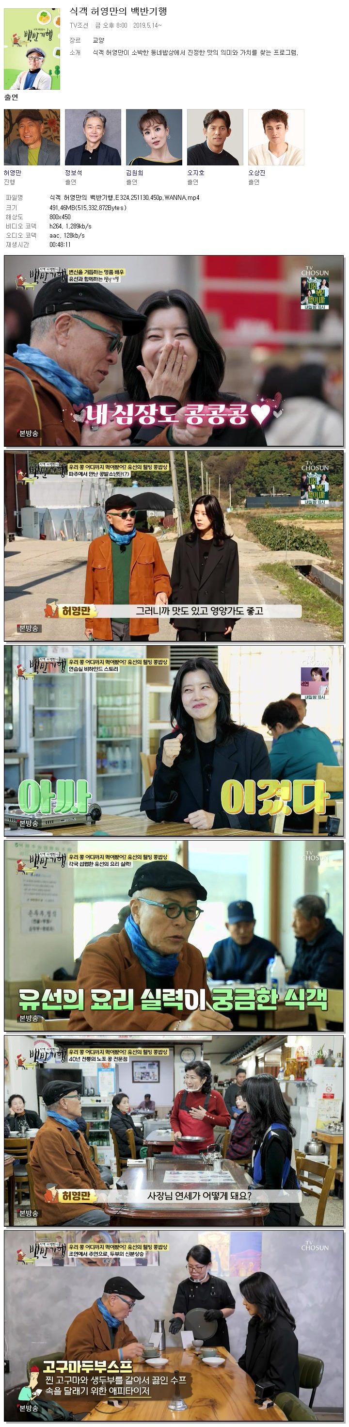 | [TV조선] 식객 허영만의 백반기행.E324.251130.450p.WANNA[유선].mp4 | 491.5 M | 00:48:11 | 800x450 |