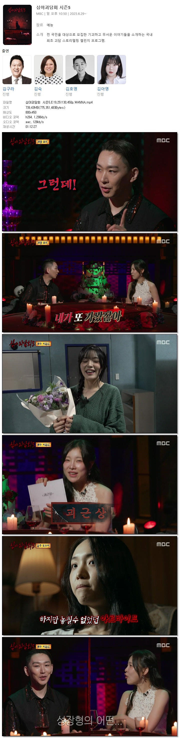 | [MBC] 심야괴담회 시즌5.E19.251130.450p.WANNA[김구라, 김호영].mp4 | 739.4 M | 01:12:27 | 800x450 |