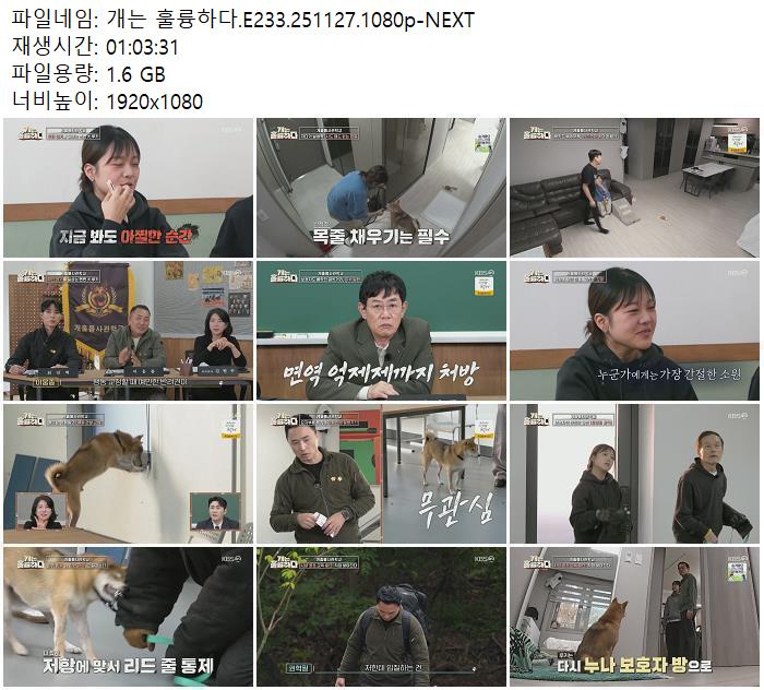 | 개는 훌륭하다.E233.251127.1080p-NEXT.mp4 | 1.6 G | 01:03:00 | 1920x1080 |