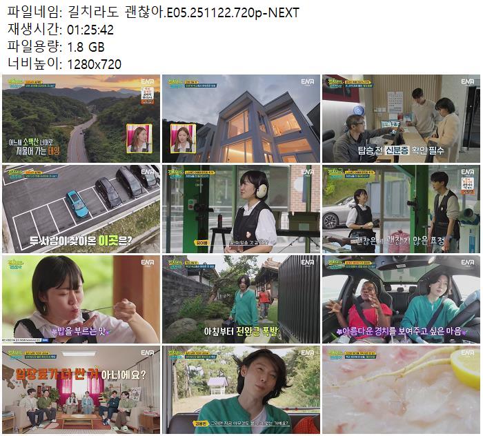 | 길치라도 괜찮아.E05.251122.720p-NEXT.mp4 | 1.8 G | 01:25:00 | 1280x720 |